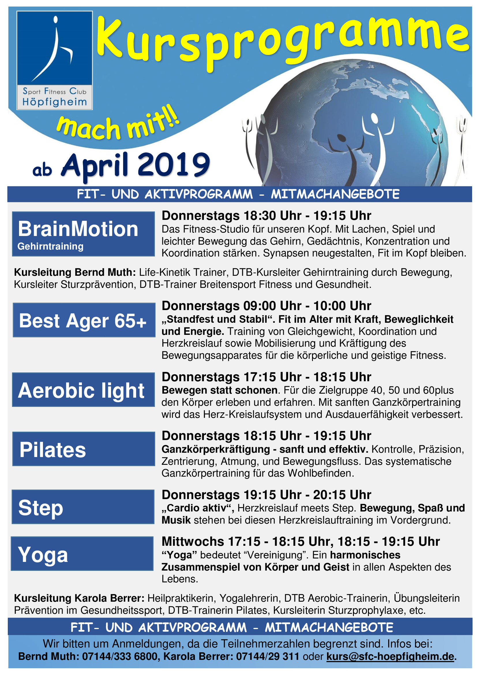 Neue Kursprogramme ab April 2019